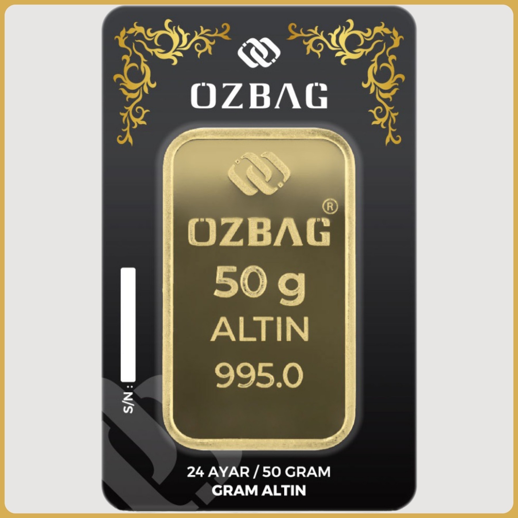 50 (Elli) gram ağırlığında 0.995 saflığında 24 ayar altın, değer ve tasarrufun temsilcisi. Saf altının parlak ve güçlü hali, tasarruf ve yatırımın vazgeçilmezi. Saflığıyla göz kamaştırır, geleceğe yatırım yapmanın güvencesi. Sonsuz bir değeri temsil eder. Değer, güven, tasrruf; hepsi bir arada. Hayatınıza ışıltı katın, 24 ayar altınla tanışın!